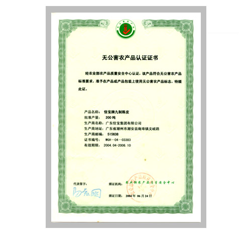 2004年 佳寶陳皮 國家農業部農產品質量安全中心